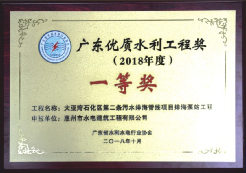 廣東優(yōu)質(zhì)水利工程獎(一等獎)——大亞灣石化區(qū)第二條污水排海管線項目排海泵站工程