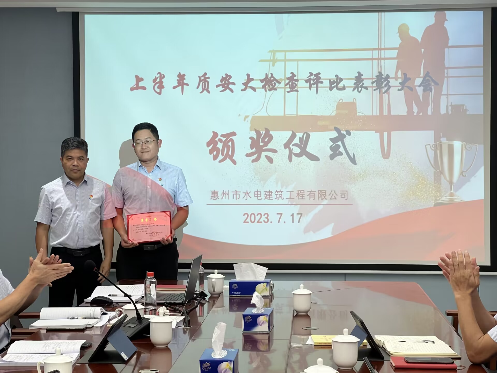 7月17日下午,市水電公司在水務調度中心1419會議室召開會議總結上半年質量安全工作,主要內容為2023年“安全生產(chǎn)月”活動總結和上半年質量安全大檢查評比表彰。公司領導班子、安委會全體成員、中層以上管理人員和質安小組骨干參加了會議。會議由分管安全生產(chǎn)副總經(jīng)理陳占瑞主持。