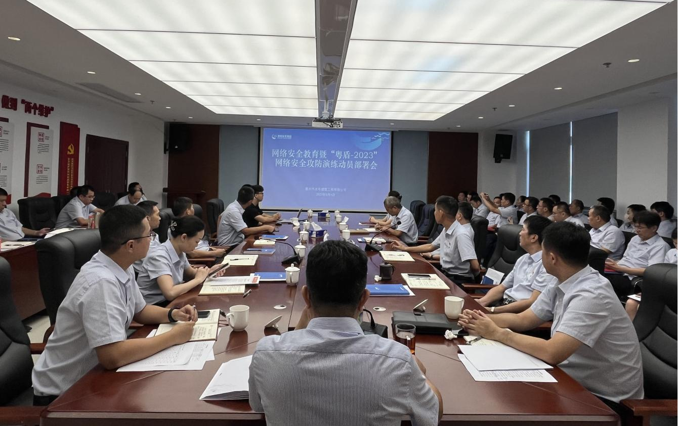 8月4日,市水電公司在1419會議室召開網(wǎng)絡(luò)安全教育暨“粵盾-2023”網(wǎng)絡(luò)安全攻防演練動員部署會,公司領(lǐng)導(dǎo)班子成員、機(jī)關(guān)黨支部全體黨員參加會議。本次會議由公司副總經(jīng)理、總工程師、教授級高級工程師張建平主持,特邀廣東易隆科技有限公司開展網(wǎng)絡(luò)安全教育培訓(xùn)。