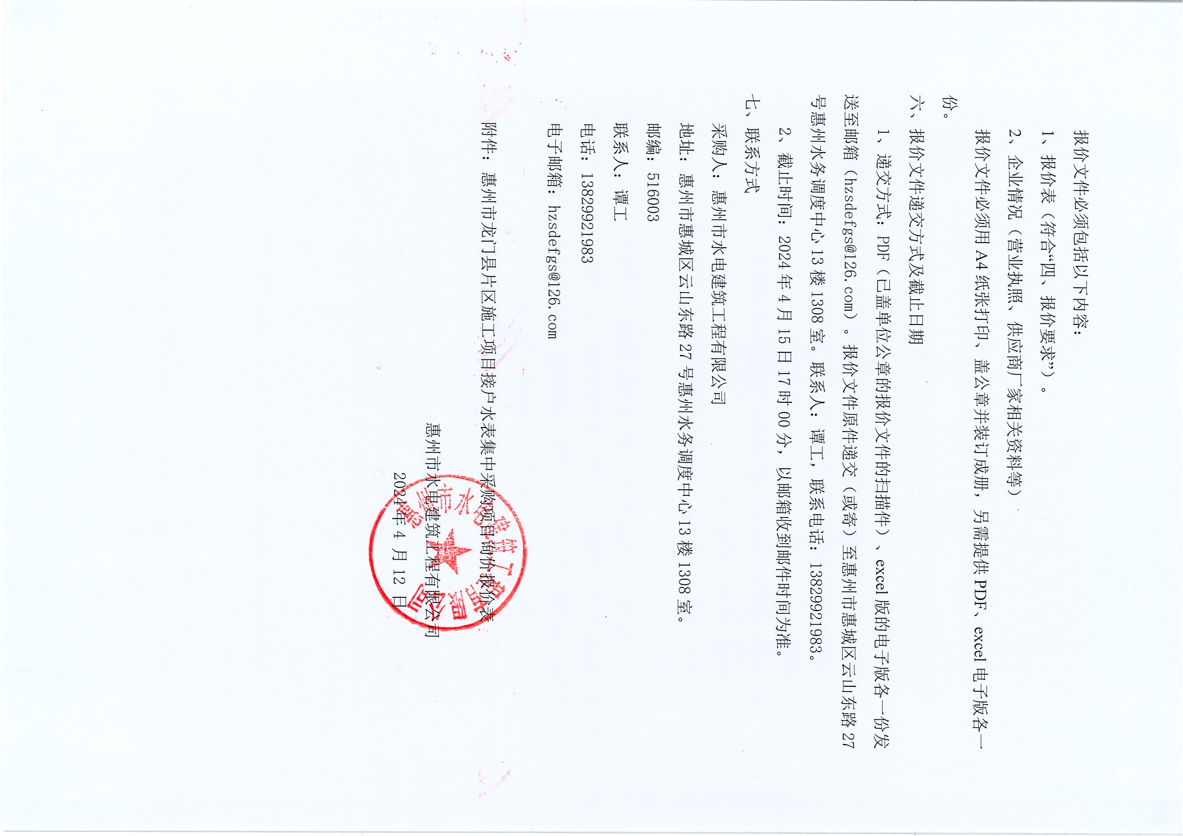 惠州市龍門縣片區(qū)施工項(xiàng)目接戶水表集中采購項(xiàng)目詢價(jià)公告