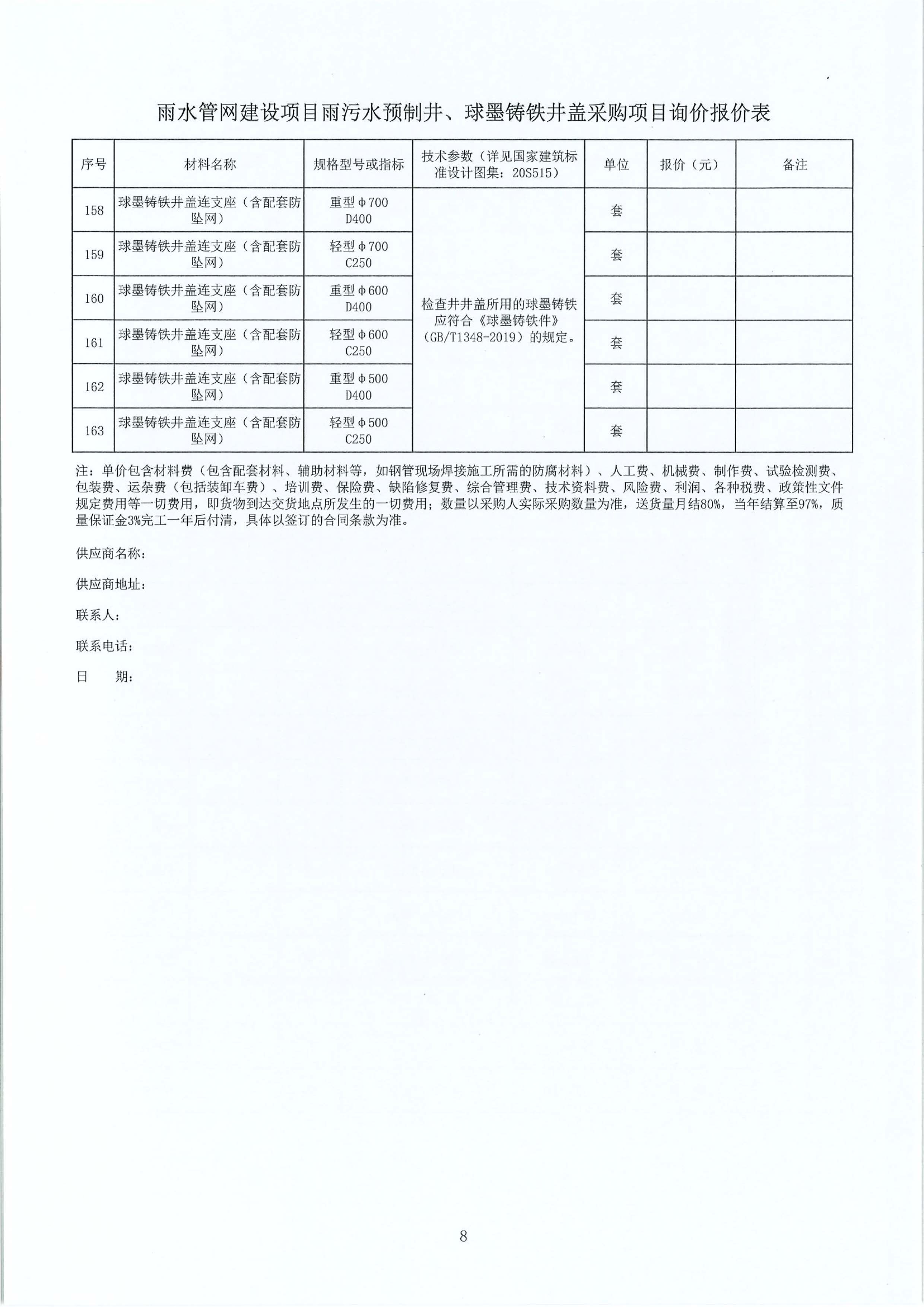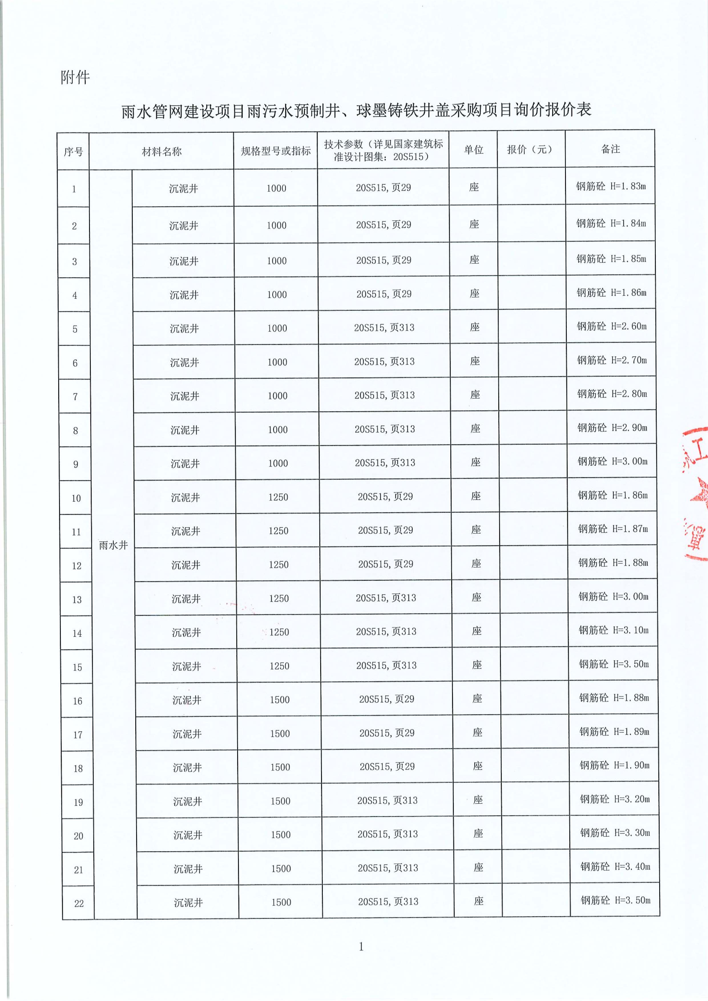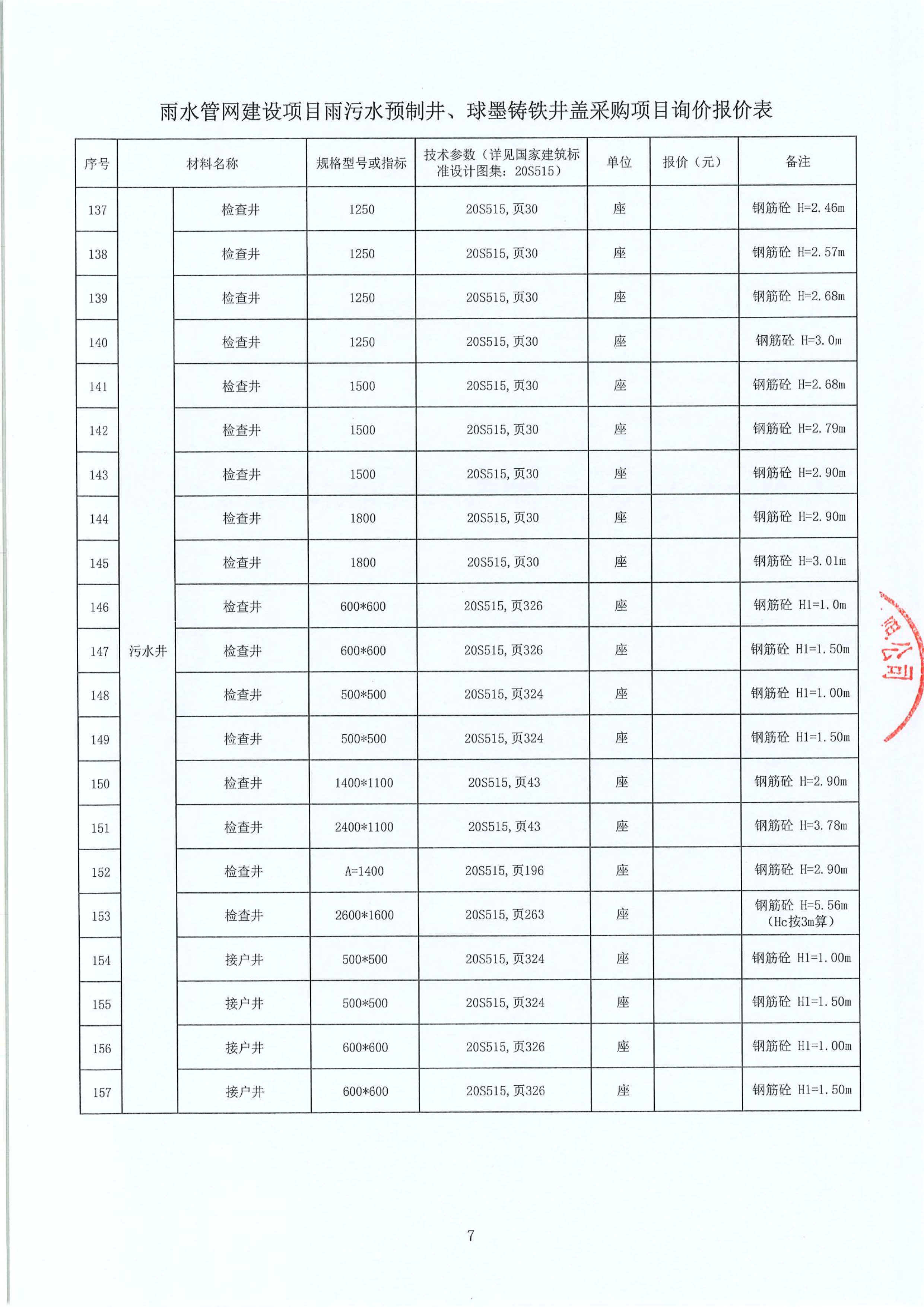 雨水管網(wǎng)建設(shè)項(xiàng)目雨污水預(yù)制井、球墨鑄鐵井蓋采購(gòu)項(xiàng)目詢價(jià)公告附件: