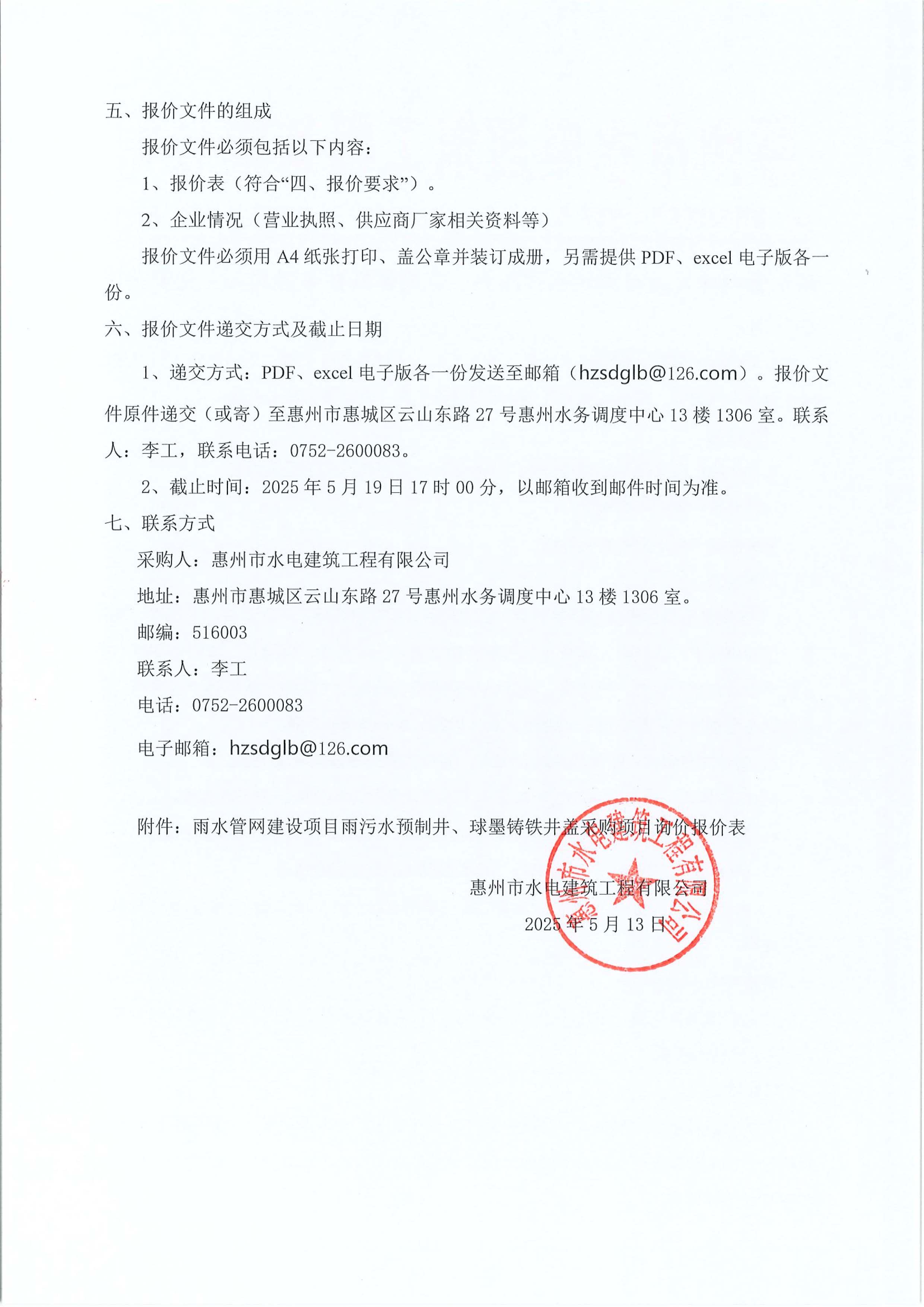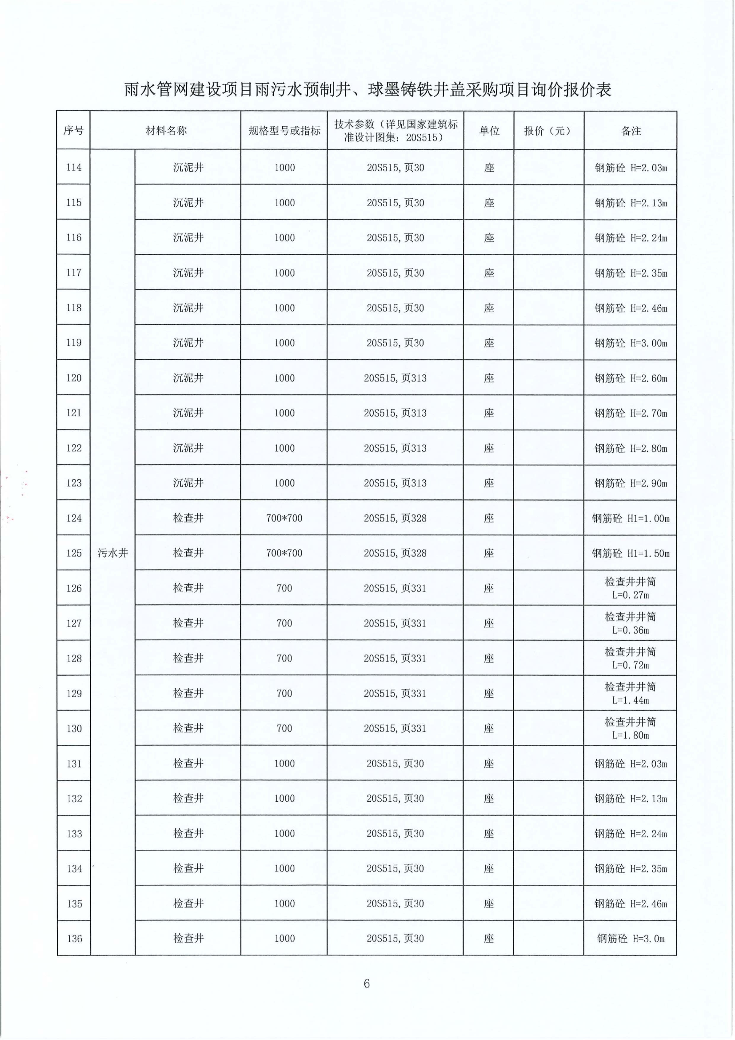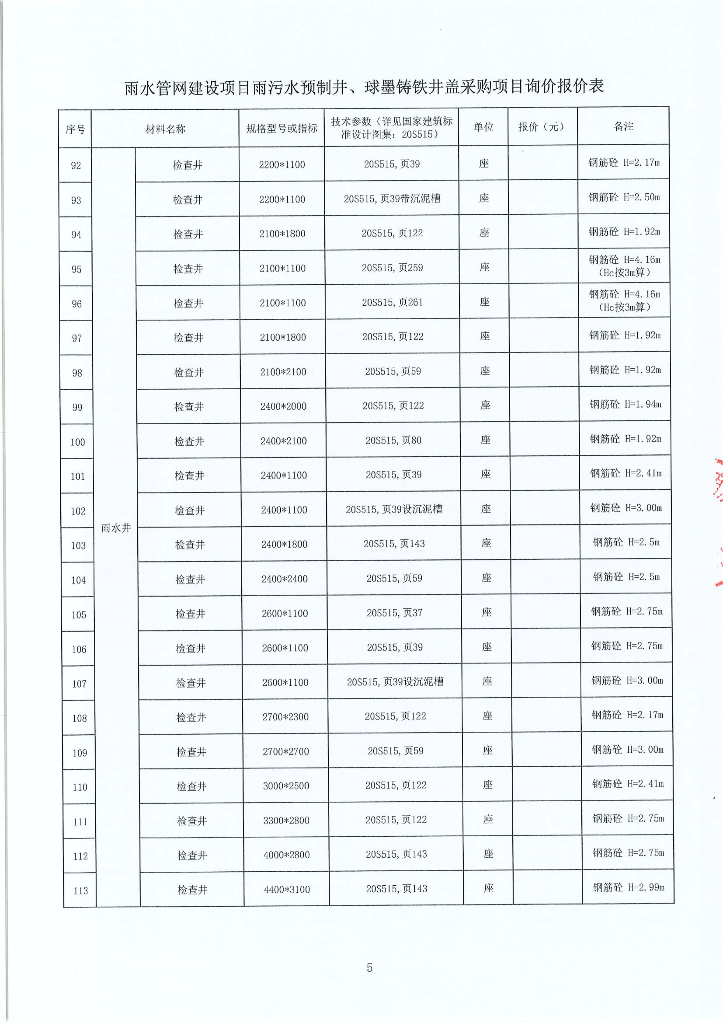 雨水管網(wǎng)建設(shè)項(xiàng)目雨污水預(yù)制井、球墨鑄鐵井蓋采購(gòu)項(xiàng)目詢價(jià)公告附件: