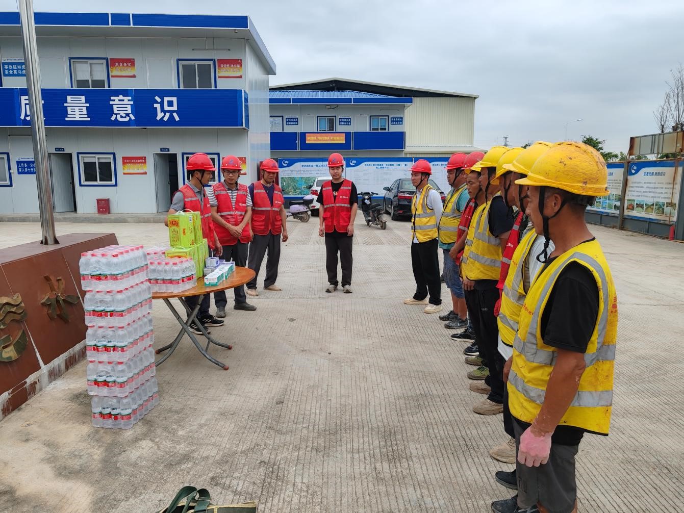 為切實(shí)做好防暑降溫工作,保障一線建設(shè)者的健康安全,5月28日上午,由我司承建的宏達(dá)路(惠大高速至一號(hào)公路段)工程(一期)臨時(shí)黨支部聯(lián)合項(xiàng)目部,在施工現(xiàn)場(chǎng)開(kāi)展“夏日送清涼”慰問(wèn)活動(dòng),為奮戰(zhàn)在高溫下的工人們送去黨組織的關(guān)懷與夏日的清涼。