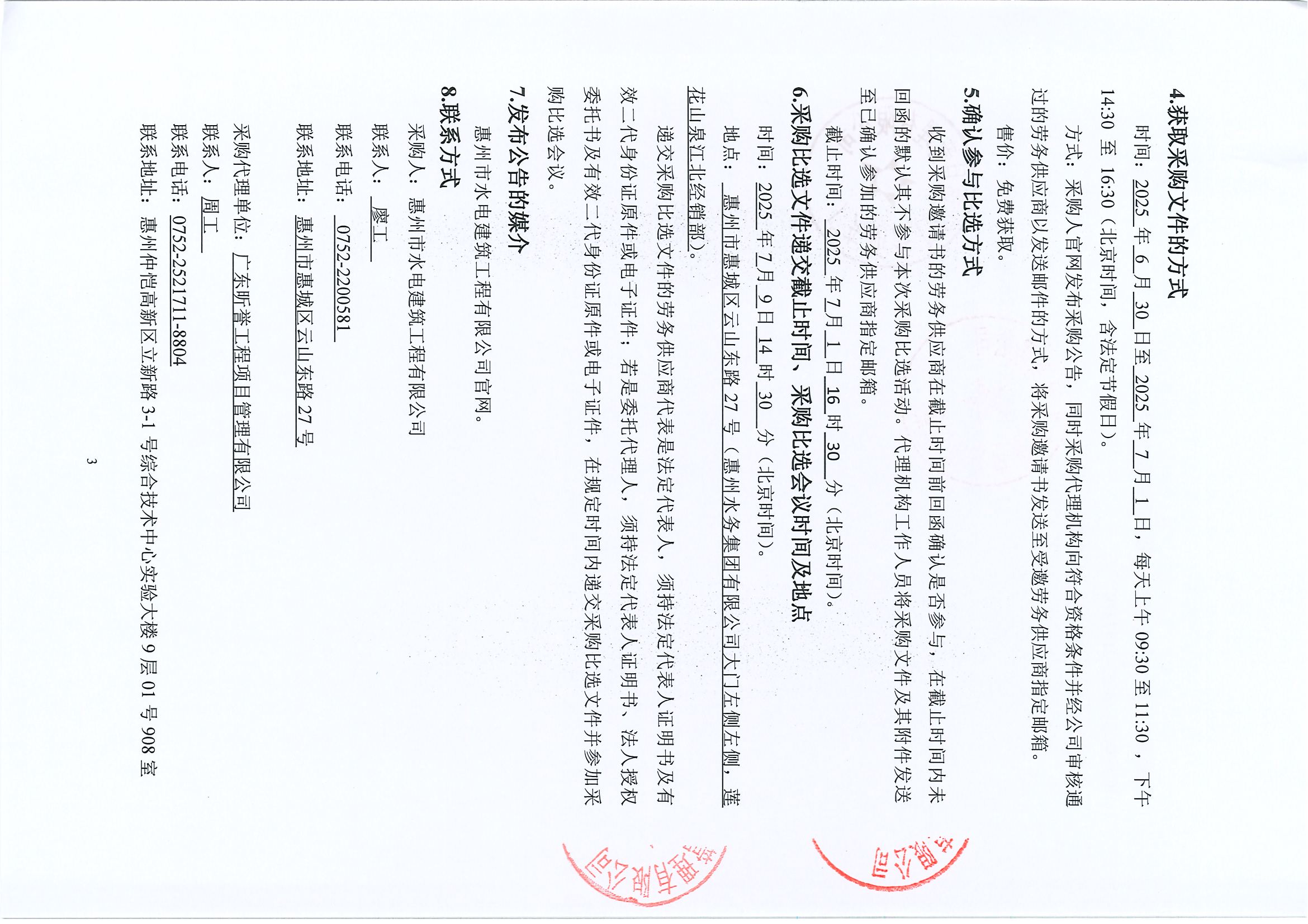 廣東省惠州市中心城區(qū)防洪排澇綜合治理工程(青邊瀝治理(一期)工程)施工勞務采購比選公告