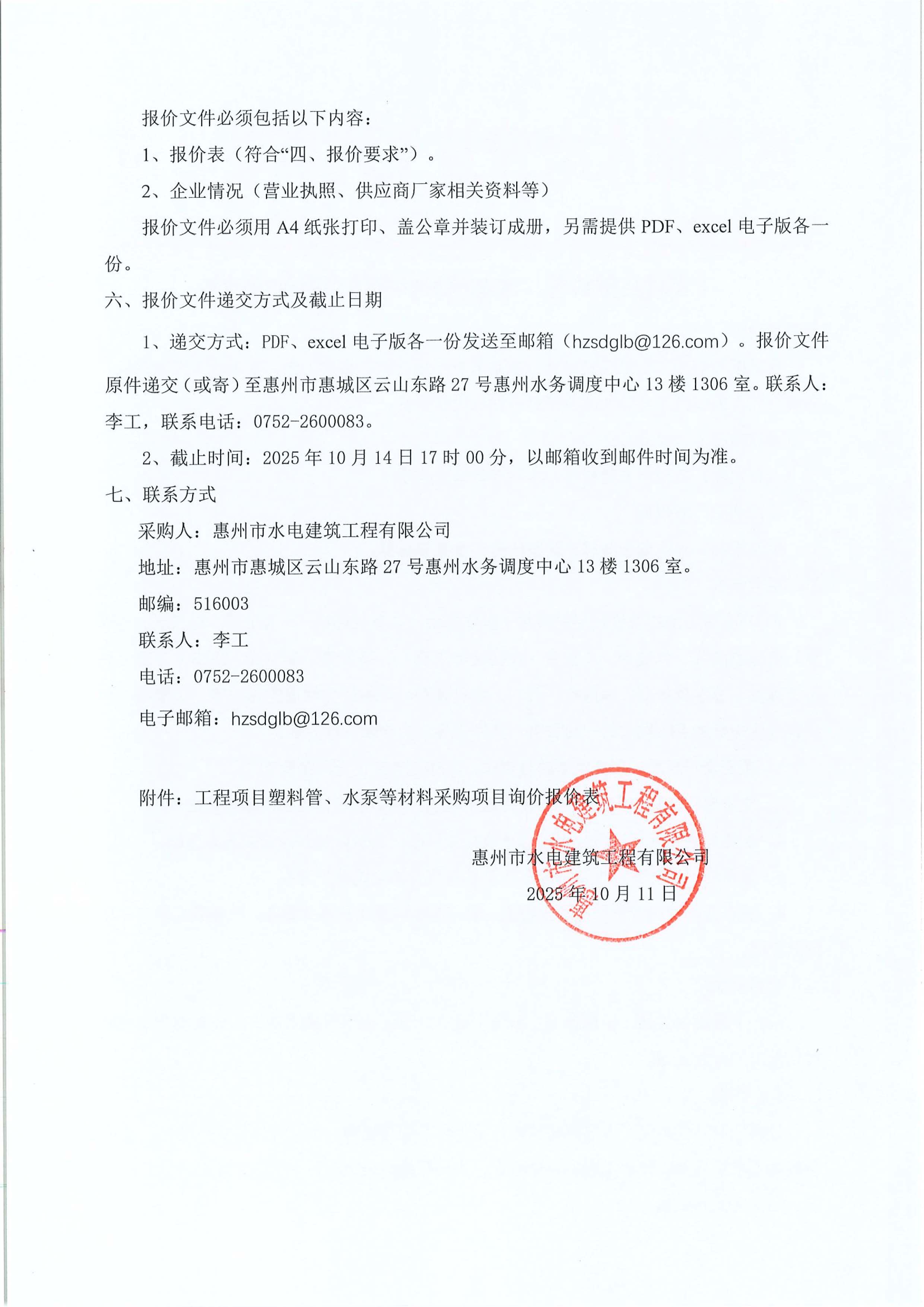 工程項目塑料管、水泵等材料采購項目詢價公告附件: