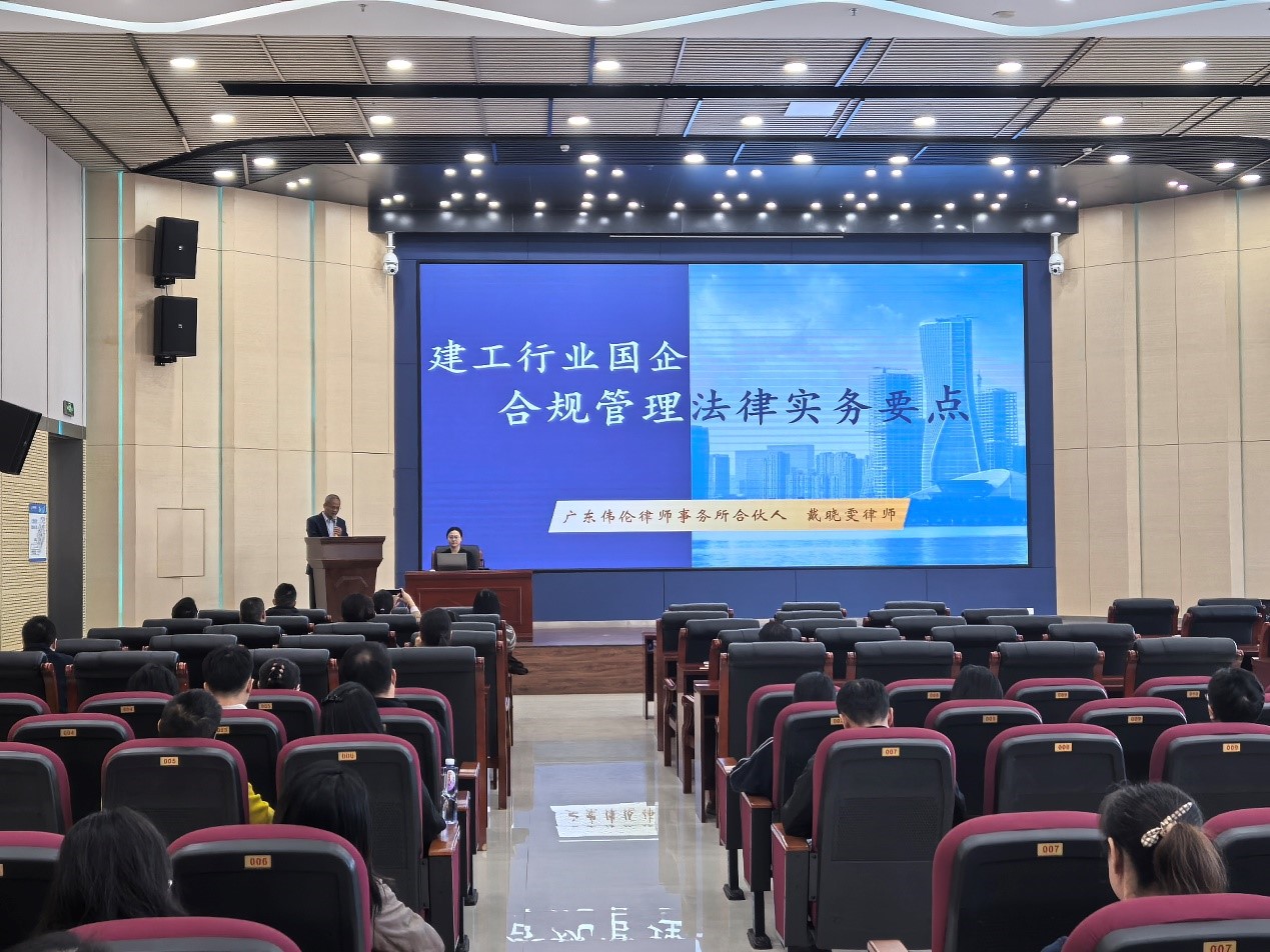 為進(jìn)一步強(qiáng)化集團(tuán)合規(guī)管理體系建設(shè),提升建設(shè)工程領(lǐng)域風(fēng)險(xiǎn)防控能力,11 月 21 日下午,由我司主辦的“建工行業(yè)國企合規(guī)管理法律實(shí)務(wù)要點(diǎn)”專題培訓(xùn),在集團(tuán)水務(wù)調(diào)度中心三樓報(bào)告廳順利舉行。集團(tuán)總部及所屬各級(jí)企業(yè)的法務(wù)、合規(guī)、建設(shè)工程管理相關(guān)人員齊聚一堂,共同參與此次學(xué)習(xí)與交流。培訓(xùn)邀請(qǐng)廣東偉倫律師事務(wù)所戴曉雯律師擔(dān)任主講。