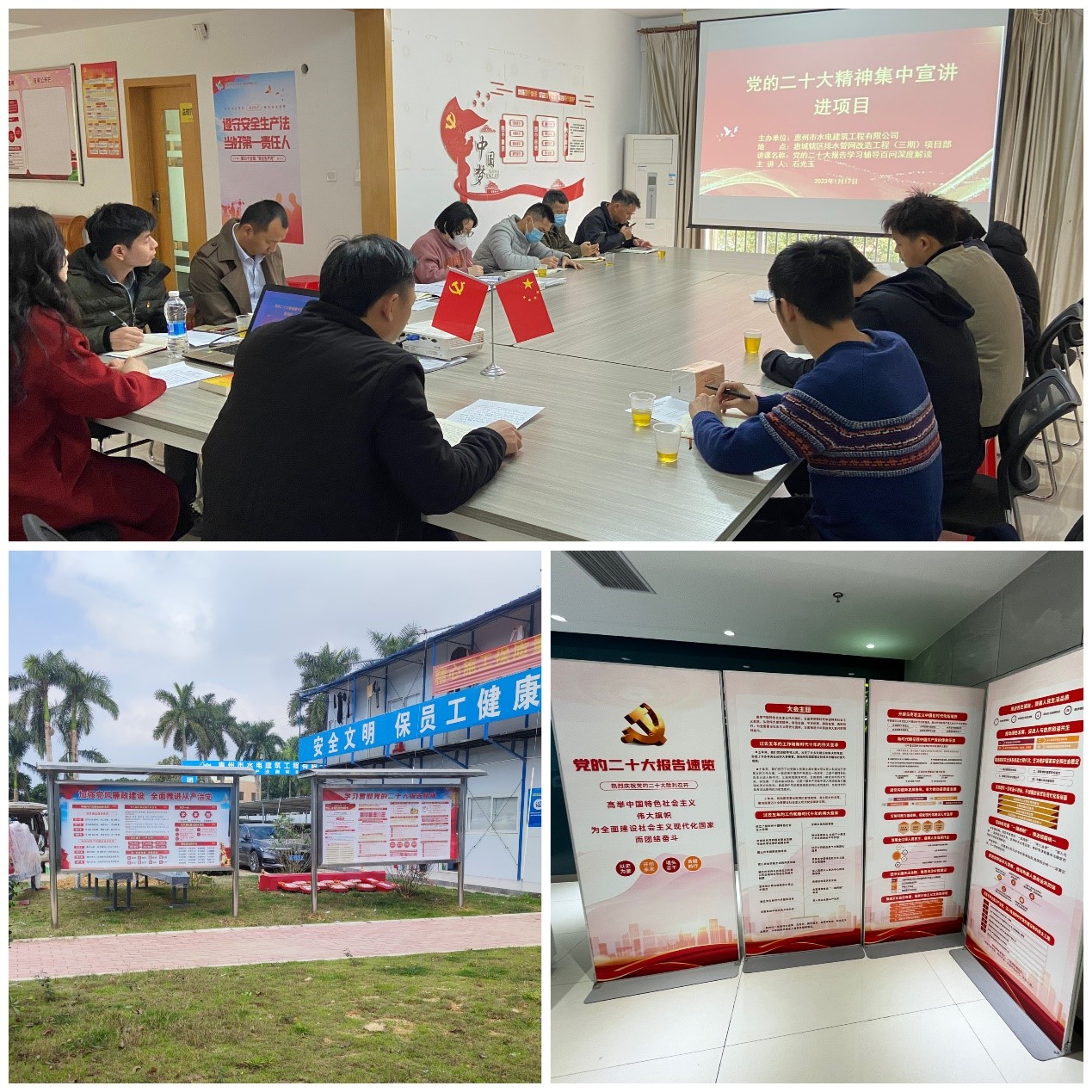 黨委領(lǐng)頭帶學(xué),各級跟進(jìn)深學(xué)。十月,公司黨委組織收聽收看黨的二十大開幕會,并召開黨委理論學(xué)習(xí)中心組(擴(kuò)大)會議,專題學(xué)習(xí)研討黨的二十大報(bào)告精神。十一月,及時(shí)召開傳達(dá)學(xué)習(xí)貫徹黨的二十大精神大會,印發(fā)學(xué)習(xí)宣傳貫徹工作方案,結(jié)合公司實(shí)際迅速部署相關(guān)工作。所屬各黨支部以高度的政治自覺、思想自覺和行動自覺,廣泛動員、有序推進(jìn)學(xué)習(xí)傳達(dá)工作,采取集體研學(xué)、專題輔學(xué)、個(gè)人自學(xué)等方式,深入開展理論解讀闡釋、交流研討,持續(xù)深入推進(jìn)黨的二十大精神學(xué)習(xí)入腦入心。同時(shí),公司在惠州新材料產(chǎn)業(yè)園污水處理廠項(xiàng)目上建立了臨時(shí)黨支部,把學(xué)習(xí)陣地建在工地一線,推動黨的二十大精神真正進(jìn)基層。