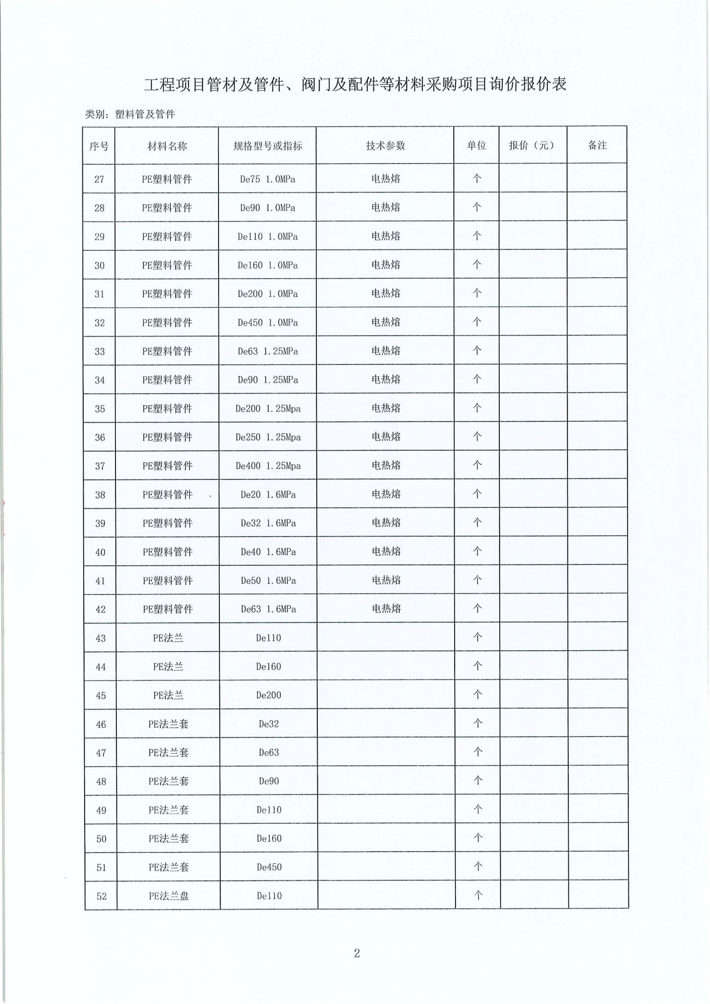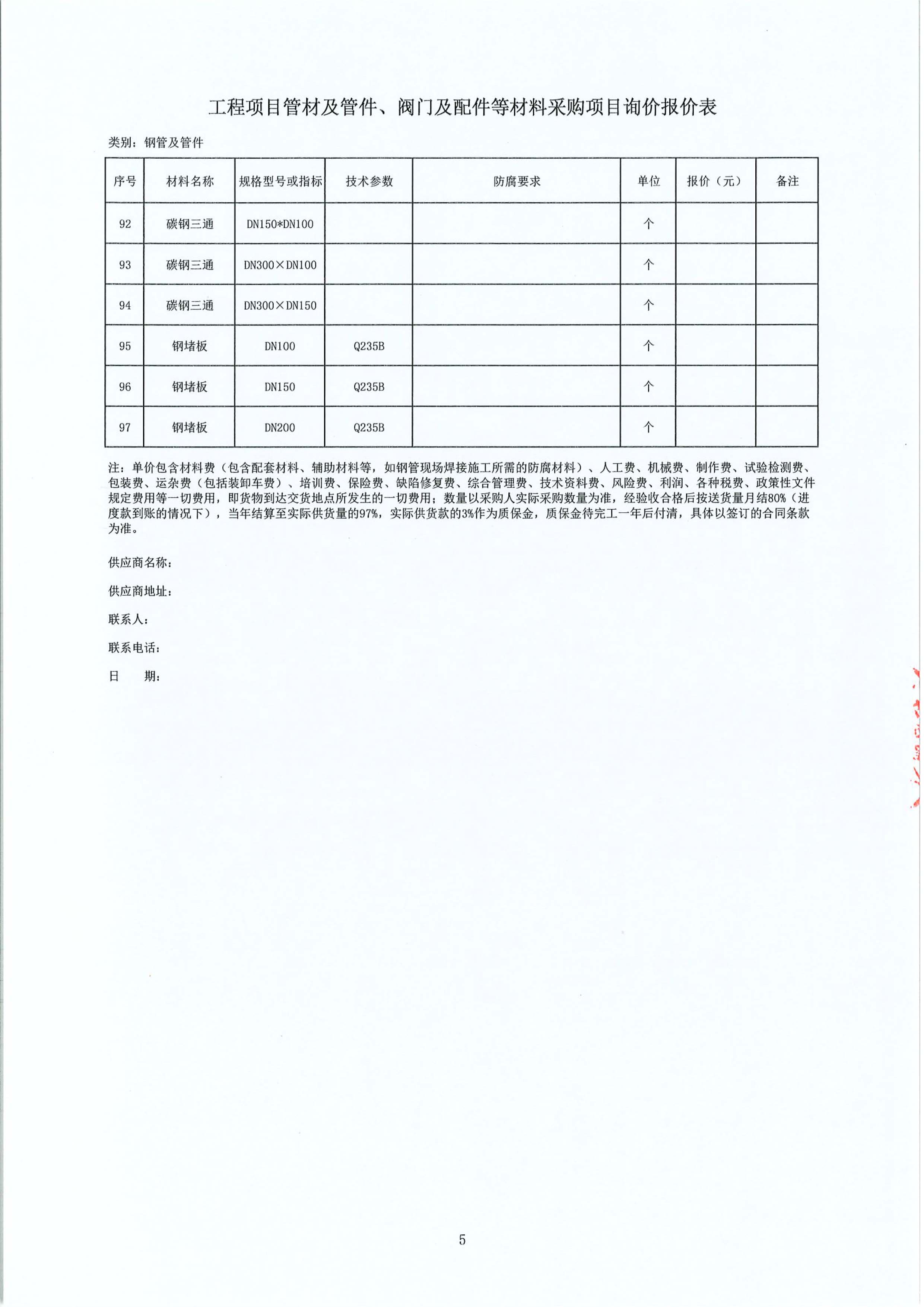 附件:工程項目管材及管件、閥門及配件等材料采購項目詢價報價表