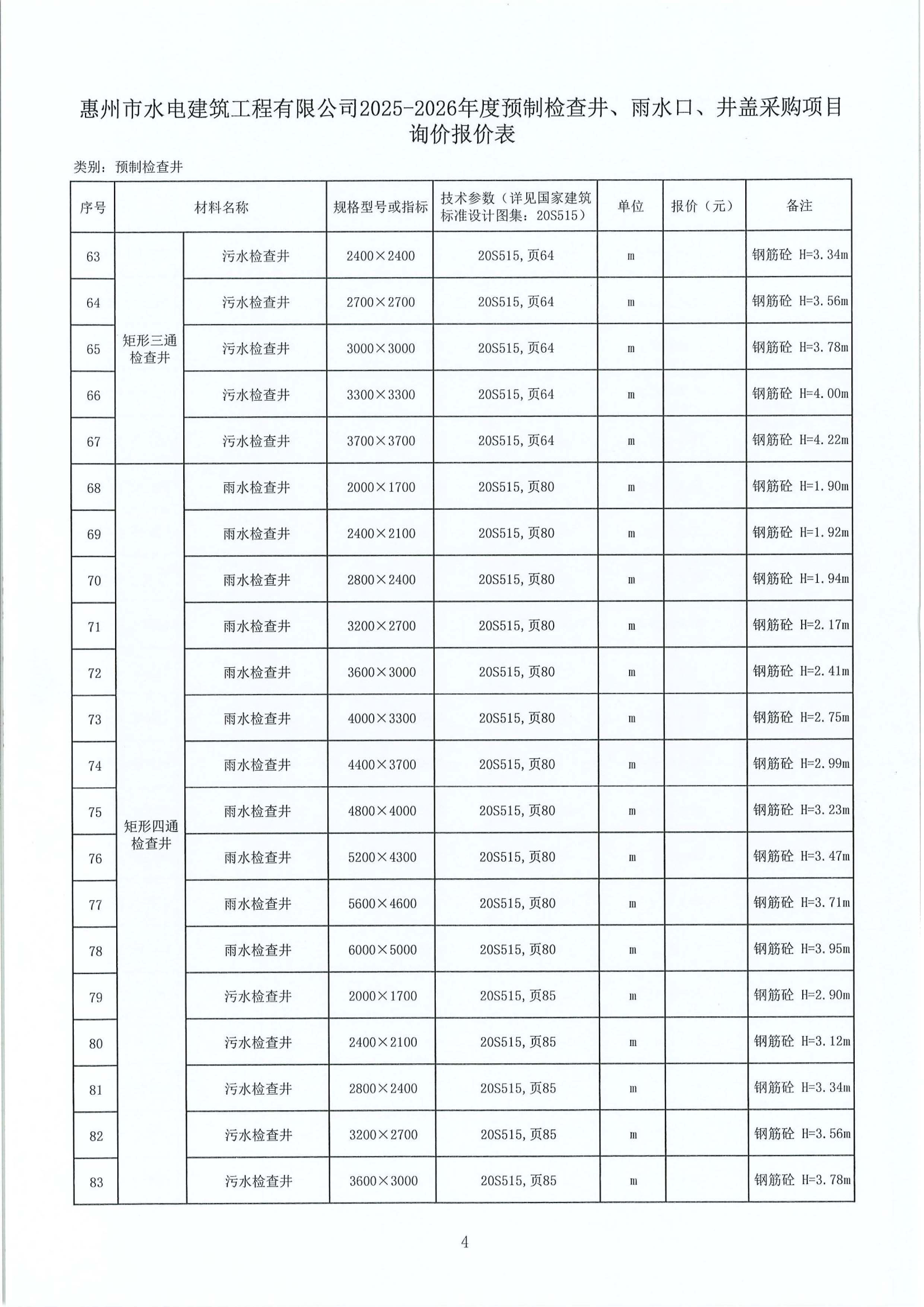 惠州市水電建筑工程有限公司2025-2026年度預(yù)制檢查井、雨水口、井蓋采購項目詢價公告附件: