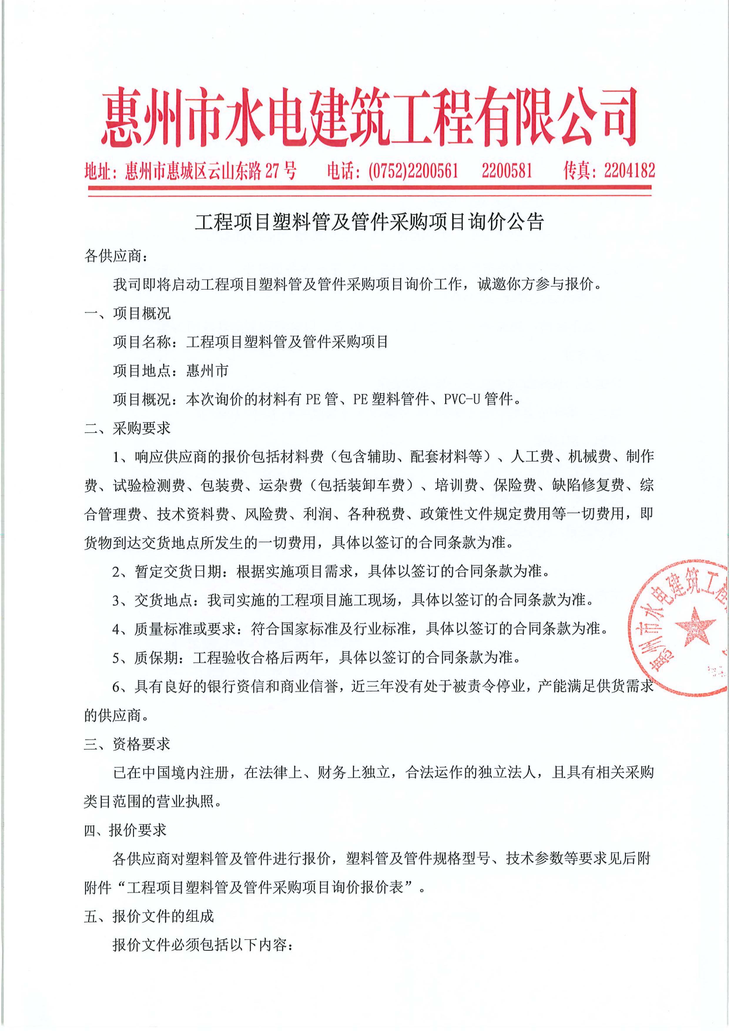 工程項(xiàng)目塑料管及管件采購(gòu)項(xiàng)目詢(xún)價(jià)公告附件: