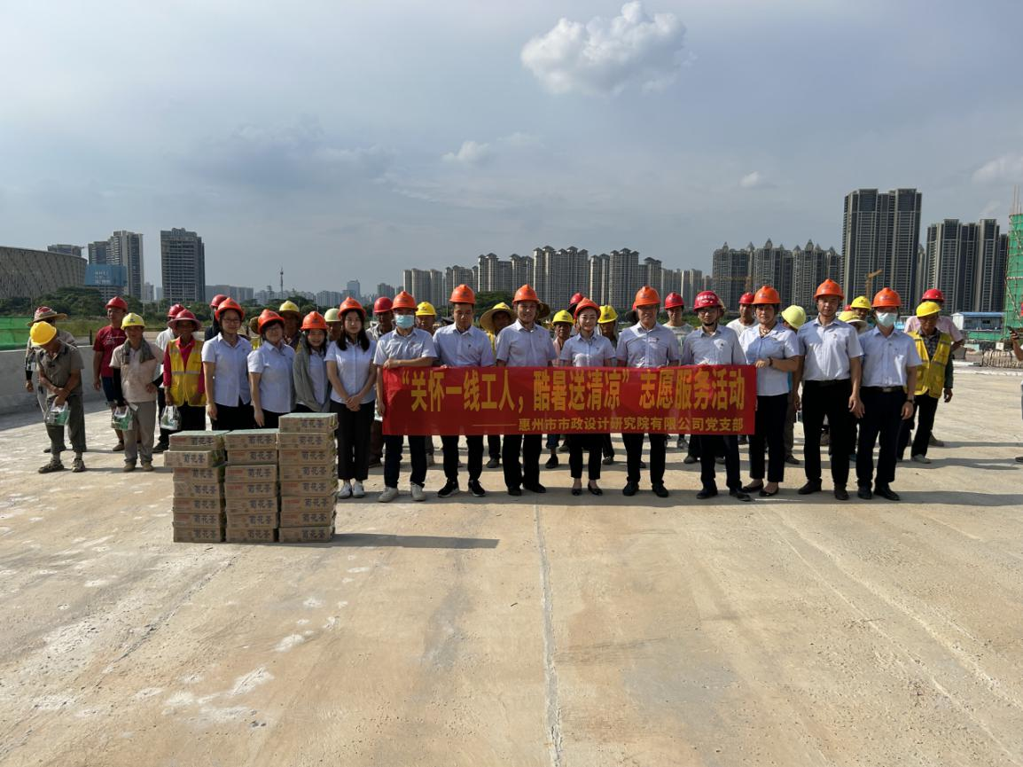 8月9日,市政設(shè)計(jì)院黨支部書(shū)記、總經(jīng)理張敏帶領(lǐng)公司黨員前往金山新城明德路、體育南路等5條配套市政道路工程項(xiàng)目現(xiàn)場(chǎng),開(kāi)展“關(guān)懷一線工人,酷暑送清涼”志愿服務(wù)活動(dòng),將黨組織的關(guān)懷送到一線工作人員手中。炎炎夏日送清涼,絲絲關(guān)愛(ài)入心田,近段時(shí)間惠城區(qū)連日高溫,驕陽(yáng)似火…......