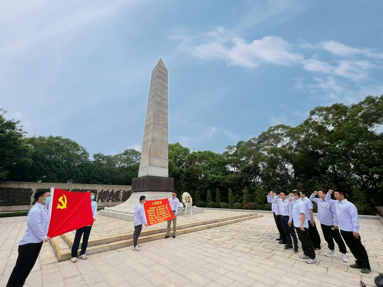 三公司黨支部成員整齊肅立于東江人民革命烈士紀(jì)念碑前,祭奠烈士英靈,緬懷英雄豐功偉績(jī),寄托無(wú)限追思。隨后,黨員們?cè)谇f嚴(yán)的紀(jì)念碑下重溫入黨誓詞,在王東海書(shū)記的領(lǐng)誓下,大家舉起右拳,面對(duì)黨旗,莊嚴(yán)宣誓,用鏗鏘的誓言表達(dá)對(duì)黨忠誠(chéng)的決心,堅(jiān)定為共產(chǎn)主義奮斗終身的崇高信仰。